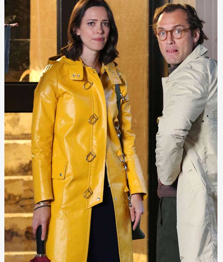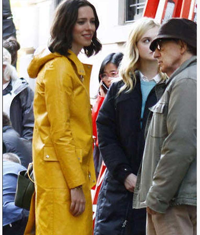 Ashleigh A Rainy Day In New York Elle Fanning Leather Coat with Hood comes up in vibrant yellow color. Vivid in style quite dreamy this outerwear uses leather as exterior and for interior viscose lining. Full in length sleeves have round cuffs. Unique buckle front closure makes it a more eye-catching and highlighted outfit. Attached hood with two side waist pockets this coat is devastating and advantageous at the same time. This coat is admirable due to its perfect length.