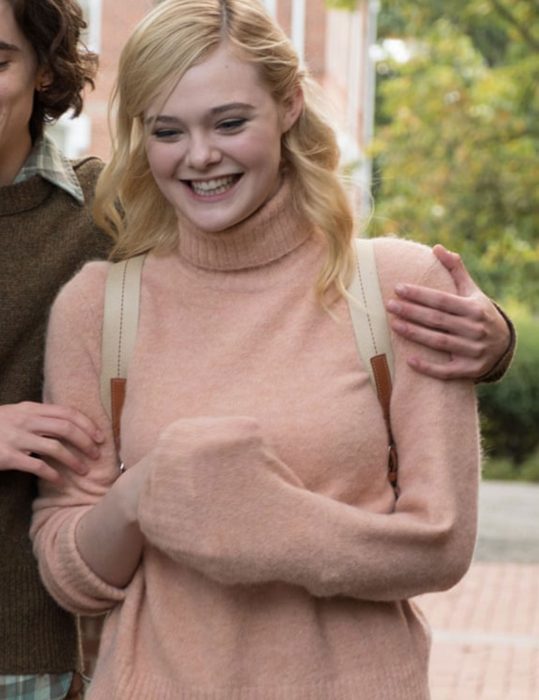 A Rainy Day In New York Elle Fanning Pink Sweater