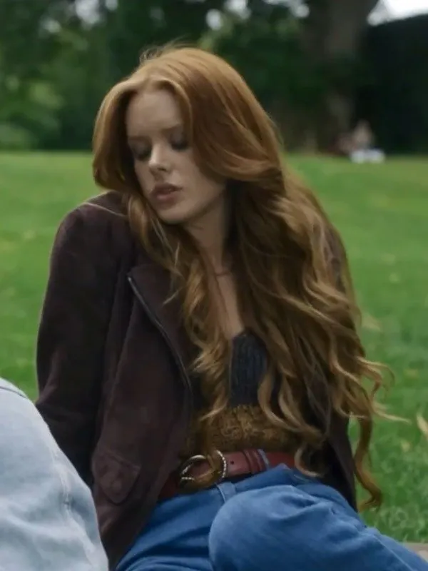 Abigail Cowen cuts her birthday cake on born March 18; she is an American actress and model. She portrays Bloom in The Winx Saga. The Abigail Cowen Fate The Winx Saga S2 Maroon Suede Jacket is made up of Suede leather, and inside it has a Viscose lining, giving you an utter sense of warmth and comfort. It has two inside pockets and two outside pockets, giving you an option to keep an item or two, like a wallet, cell phone, makeup kit, etc. It has full-length sleeves, with a YKK zipper protecting your hands against sunlight and UV rays. The front of the jacket has an Asymmetrical zipper and Notch lapel-styled collars that look stylish and fashionable.