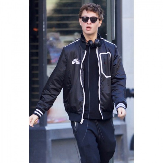 Ansel Elgort Baby Driver Black Bomber Letterman Jacket