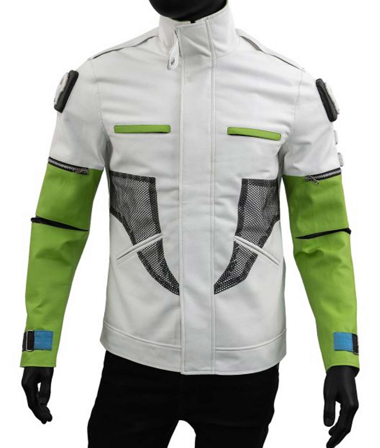 Video Game Apex Legends Green and White Crypto Leather Jacket