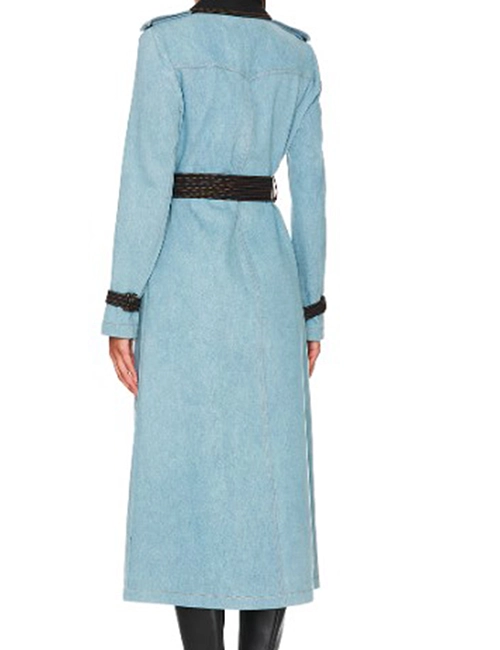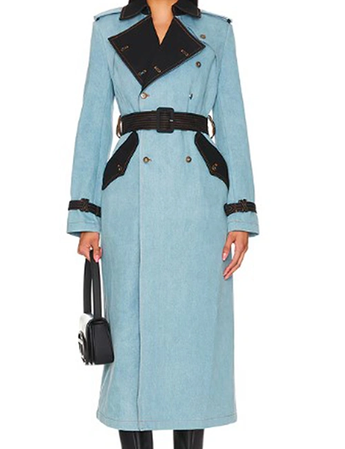 Featuring a wide lapel collar, this coat exudes power and grace, framing your face with a refined touch. The full-length sleeves with belted open hem cuffs add a polished detail, making sure every movement feels like a cinematic moment. The double-breasted buttoned closure paired with a belted waist allows for a customizable fit—cinch it for a sleek, structured look or wear it open for effortless flair.
