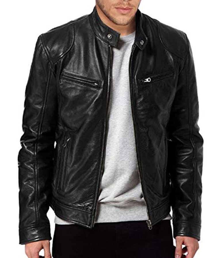 Cafe Racer Real Lambskin Leather Distressed Motorcycle Jacket