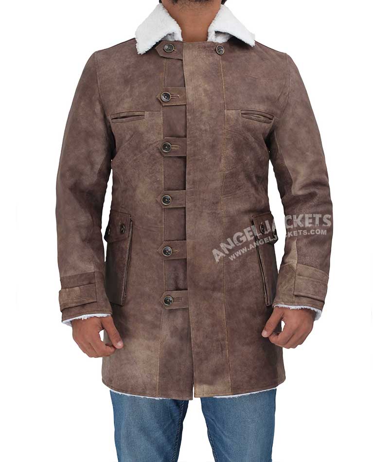 The men’s brown sherpa coat is made of real leather and comprises of a distressed screen accurate design. The coat is highly regarded for its badass style and unmatched quality.