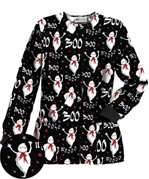 Boo Wooo Black Halloween Scrub Jacket