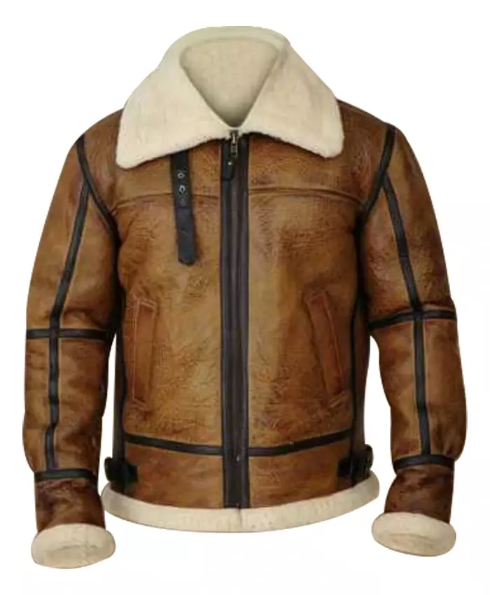 Brian-B3 Distressed Brown Shearling Bomber Jacket