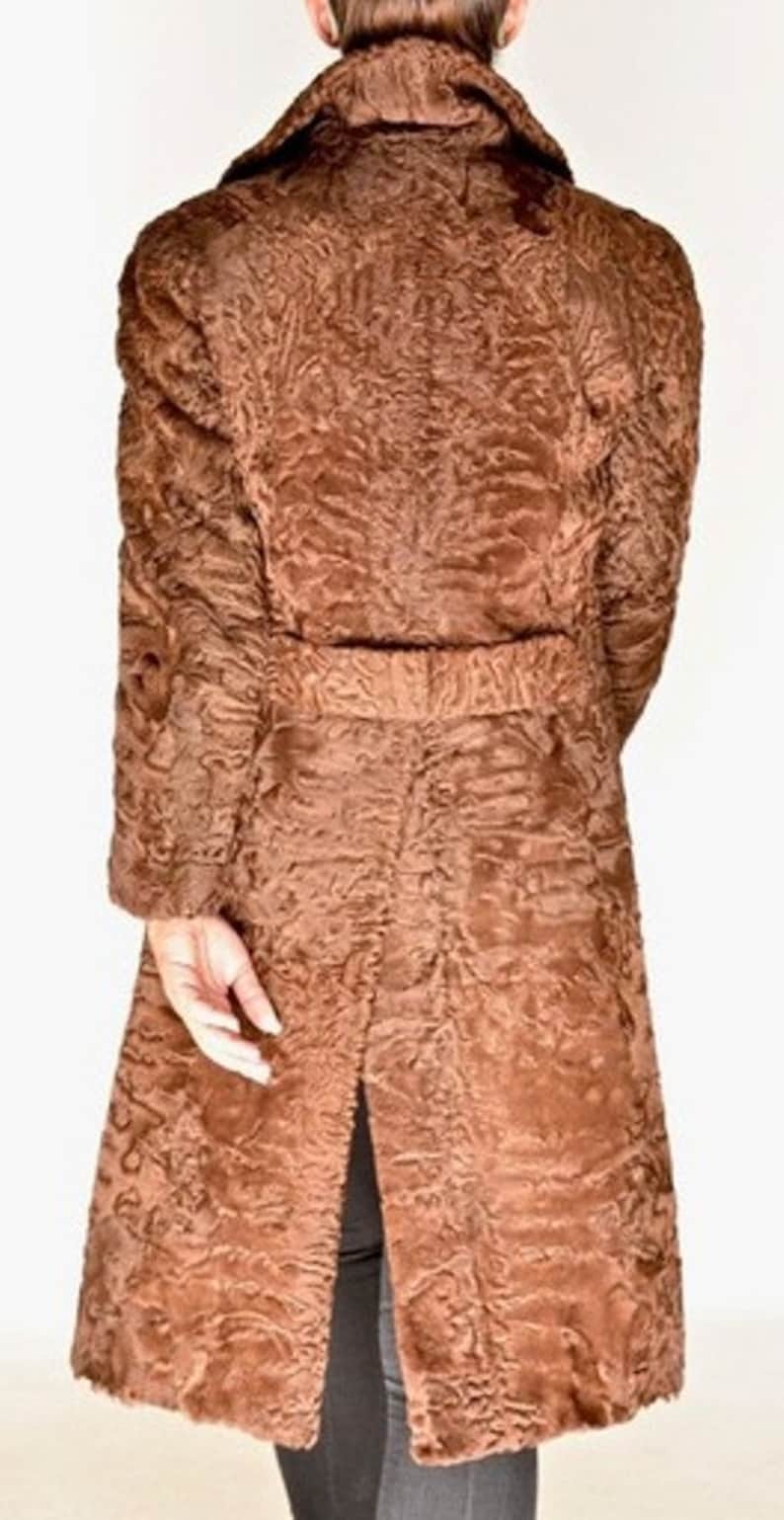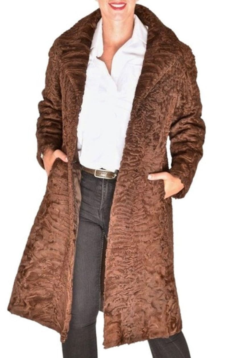 Women’s Swakara Persian Lamb Fur Trench Coat Fox Mink Fur Collar