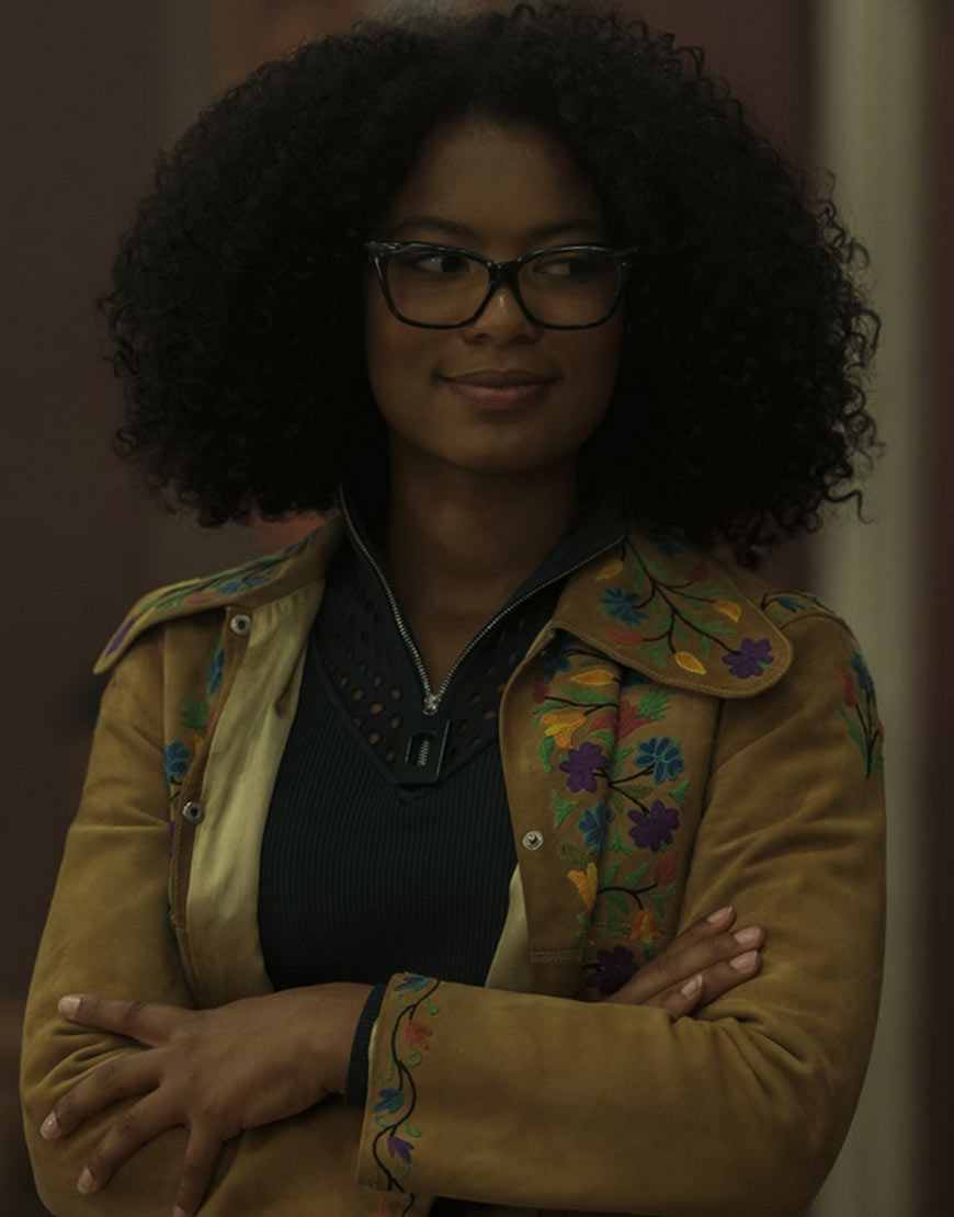 Jaz Sinclair Chilling Adventures of Sabrina Rosalind Walker Flower Floral Design Brown Jacket