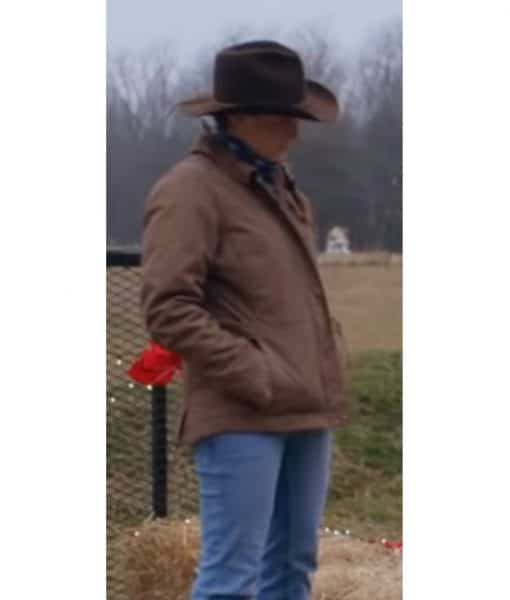 Giving a sophisticated look, the Kate Christmas at the Ranch 2021 Amanda Righetti Cotton Jacket is composed of pure cotton fabric and is lined internally with soft viscose fabric for added warmth. To ensure a notable look, it exhibits a turn-down collar, front zippered closure, and full sleeves concluded with rounded cuffs. Lastly, the most enchanting part of this apparel is the pleasing brown color.