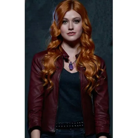 Katherine Mcnamara Shadowhunters Clary Fray Biker Maroon Leather Jacket