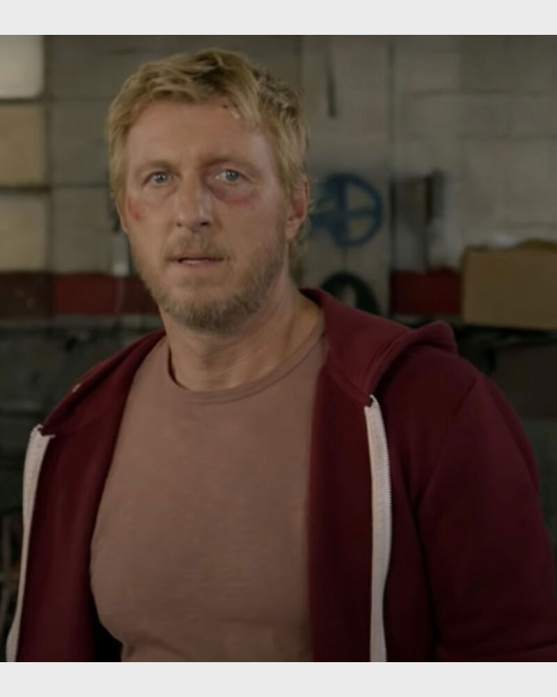 William Zabka Cobra Kai Season 04 Johnny Lawrence Maroon Hoodie Jacket