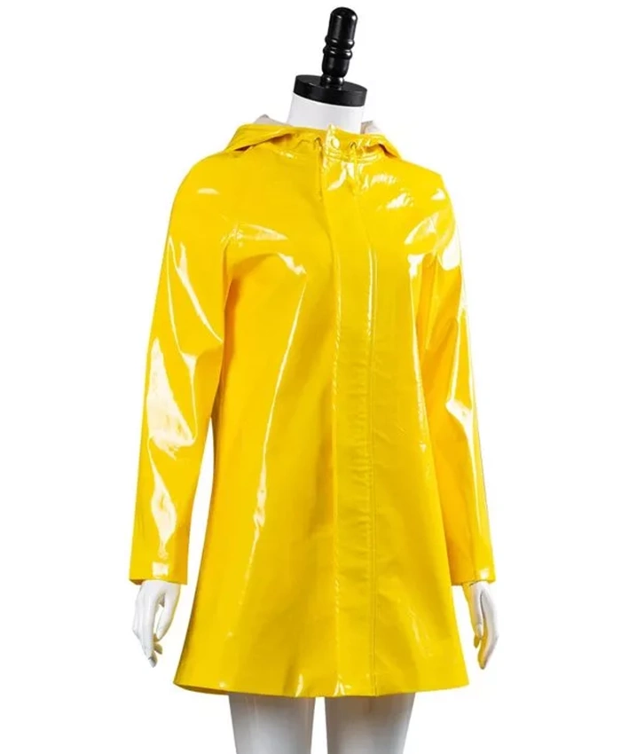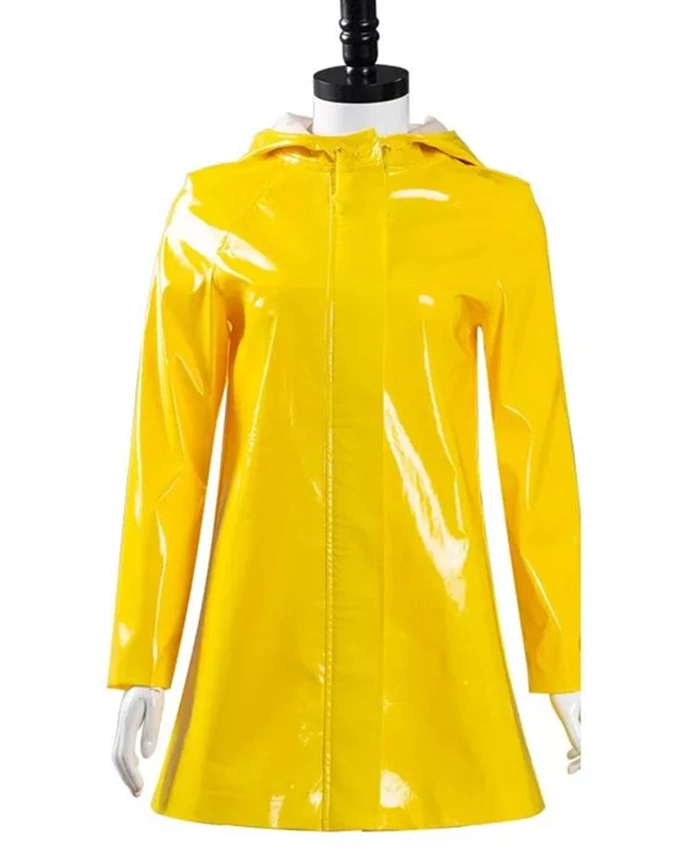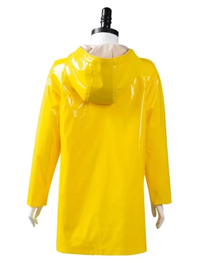 You can top off your outfit by wearing a layer of a stylish jacket such as this Coraline Yellow Jacket right here, as it will keep you warm. The inspiration behind this pictured jacket is taken from an American animated fantasy and horror film called Coraline. This jacket was worn by one of the main characters of the film named, Coraline Jones. The role of Coraline Jones was voiced by an American actress named Dakota Fanning. This Coraline Jackets has a beautiful yellow color and is made from the best PVC Material to make sure it can last a lot of years for you. This jacket can be worn by men as well as women of all ages, and we have made this Mens and Womens Coraline Raincoat Yellow Jacket For Sale. We have added a soft and smooth viscose lining inside this jacket to make it warm to wear. Its design is that of a raincoat. This jacket has a front YKK zipper closure and a hooded collar that looks amazing. This jacket has full sleeves ending on open hem cuffs and has two side pockets as well as two inner pockets to keep your stuff.