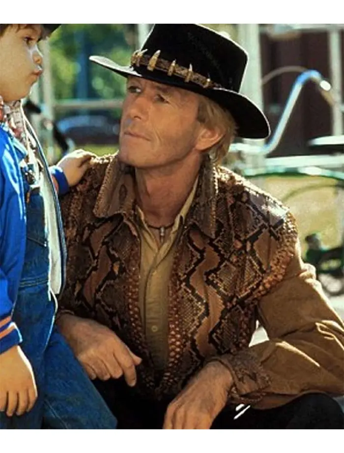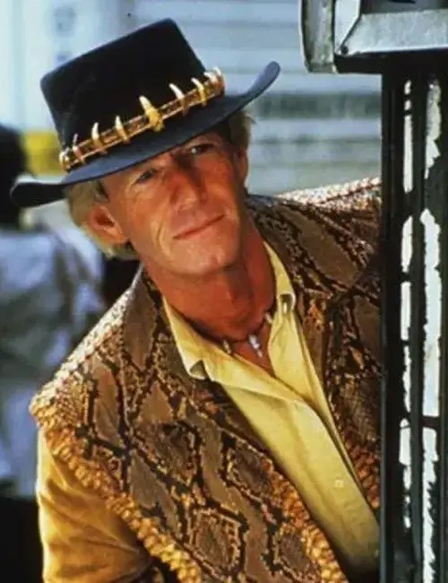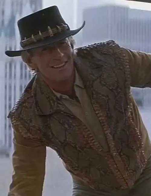 An American journalist goes to the Australian outback to meet a weird crocodile poacher and invites him to New York City. Paul Hogan became a worldwide success with his irresistible comic performance in Crocodile Dundee (1986), which he created and co-wrote. This earned him a Golden Globe Award for Best Actor and an Oscar Award nomination. The Crocodile Dundee 1986 Michael Dundee Leather Vest is made up of PU leather and genuine leather, and inside, it has a viscose lining that gives you a sense of comfort and warmth.