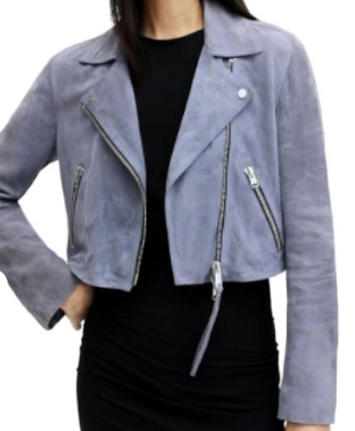 In the series, Daphne’s fashion choices are both bold and sophisticated, reflecting her dynamic personality. One standout piece from her wardrobe is a blue suede biker jacket that perfectly encapsulates her edgy yet polished style. This jacket is crafted from high-quality suede leather, ensuring both durability and a luxurious feel. The inner viscose lining provides comfort, making it suitable for extended wear.
