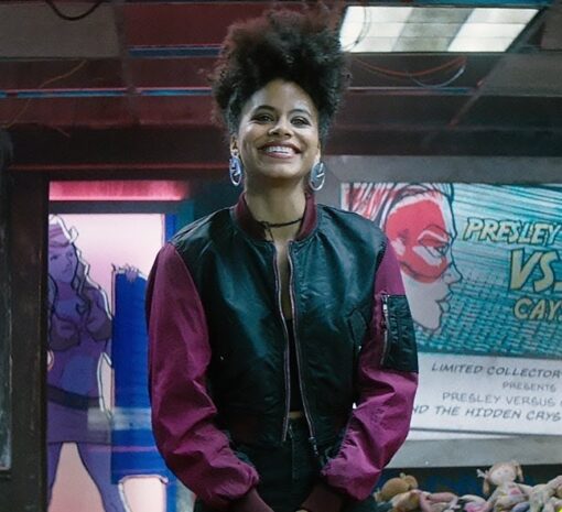 Movie Deadpool 2 Zazie Beetz Domino Black and Purple Bomber Jacket