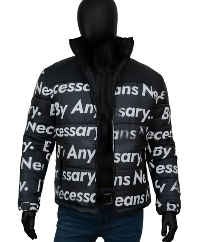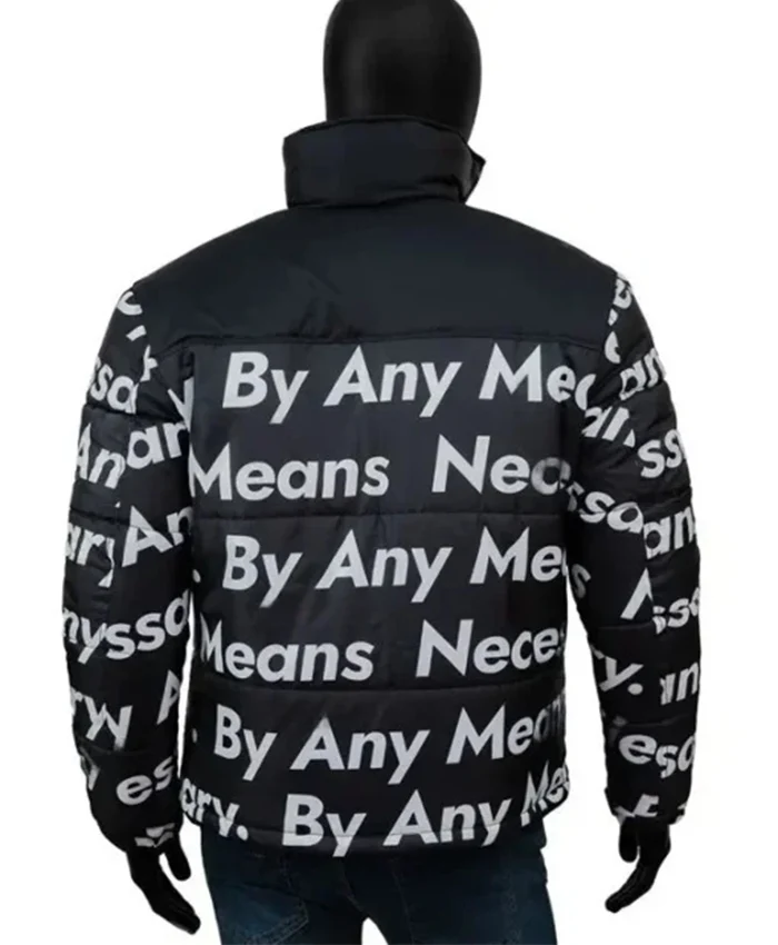The Anime TV Series Meme Supreme Black Puffer By Any Means Necessary Printed Dragon Ball Z Goku Drip Jacket is composed of a quilted parachute. It has a viscose lining inside for maximum warmth and comfort. It has two side waist pockets, two zippered front closures, full-length sleeves, and round cuffs. This Jacket is the whole package for a party. You may also want to read about Comp Goku.