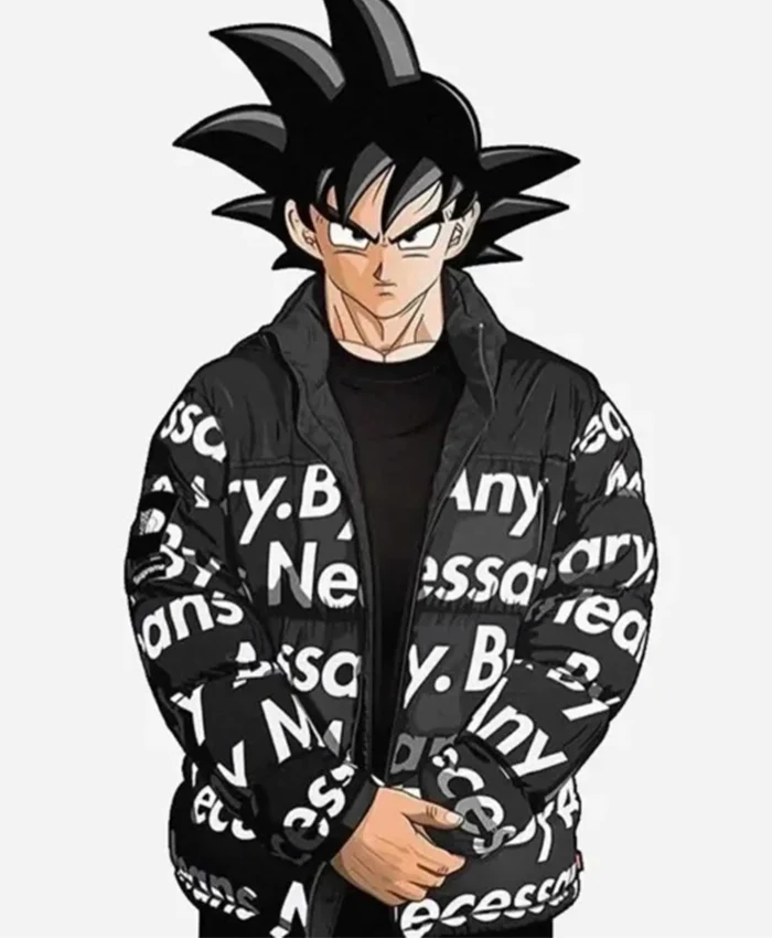 Black Supreme By Any Means Necessary Puffer Dragon Ball Z Goku Drip Jacket