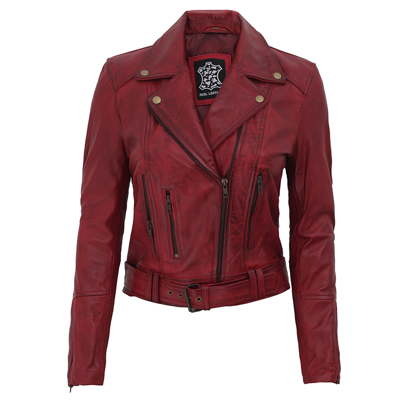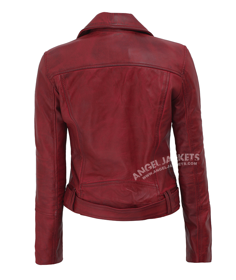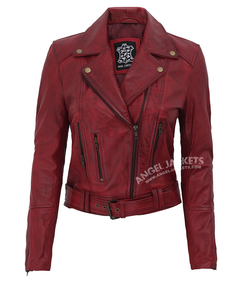 Maroon Leather Biker Jacket