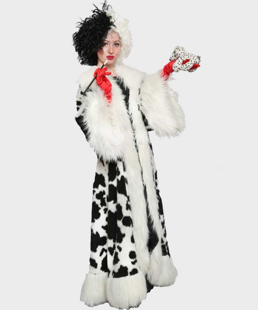 Emma Stone Cruella black dot white shearling coat is the popular actress Emma stone’s jacket in a crime comedy movie. Craig Gillespie directed the Cruella film. This movie is based on Cruella de Vil’s character, and this character came from Dodie Smith’s 1956 novel. In this series, Emma Stone played the role of Cruella Deville.