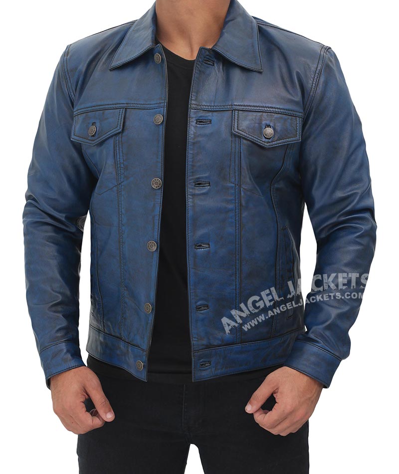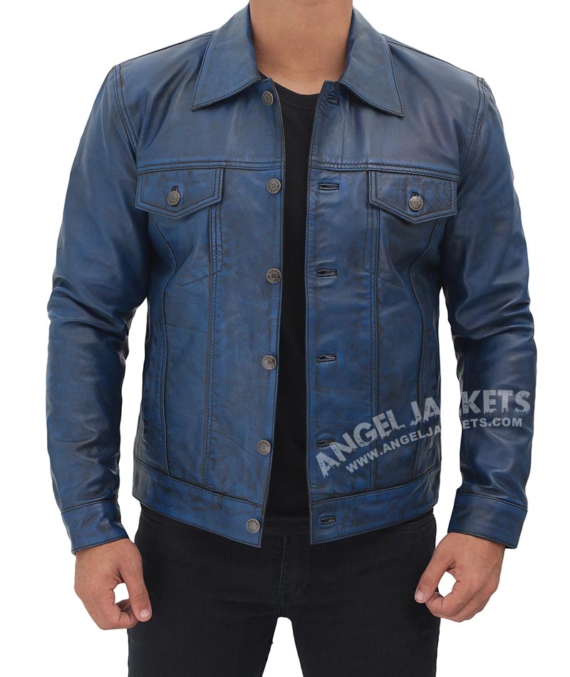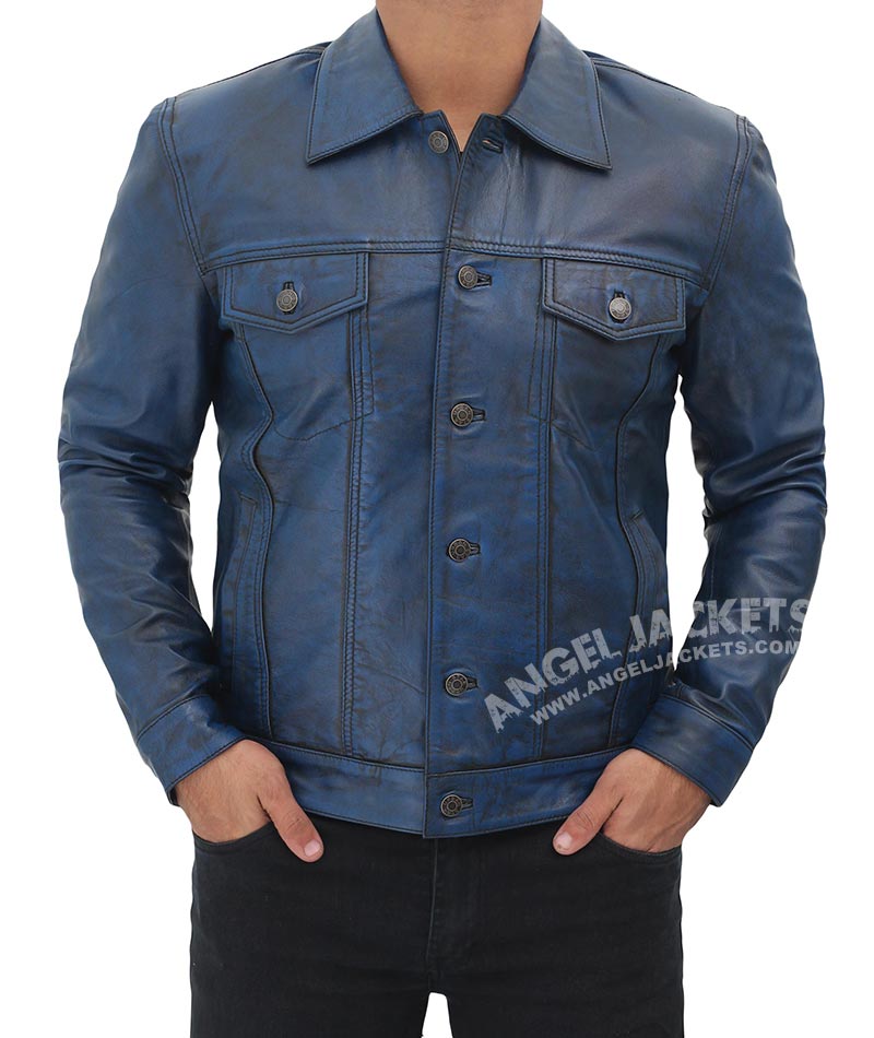 Fernando Blue Trucker Leather Jacket