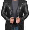 Extremely high quality mens black leather blazer is an awesome piece of attire who meets all of your requirements. It is a great outfit to go into the parties and functions that can be easily wearable on jeans. It will give you a badass look if you wear it with a formal dress. It is featured with button closure, lapels and two big flap pockets for keeping your items.