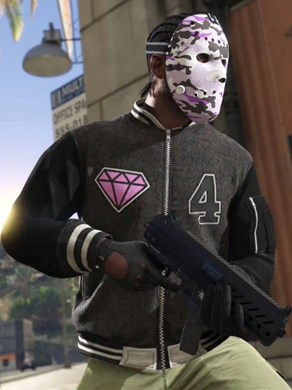 GTA 6 Panther Logo Grand Theft Auto VI Diamond 4 Patch Varsity Bomber Letterman Jacket