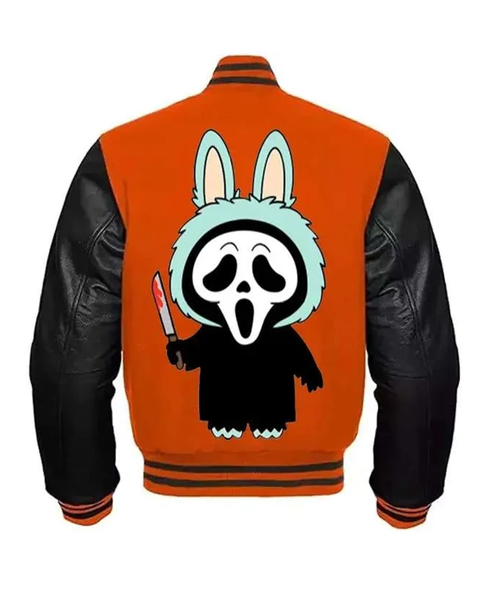 The Halloween Labubu Ghostface Varsity Jacket is where playful mischief meets slasher cinema. If you’re into pop culture mashups, this one is a must-have. Labubu, the trickster character from The Monsters universe, is already known for its mischievous bunny ears and quirky persona. But in this piece, Labubu takes on the infamous Ghostface mask from the Scream franchise blurring the line between “too cute” and “too creepy.” The result? A jacket that’s as much art as it is outerwear.