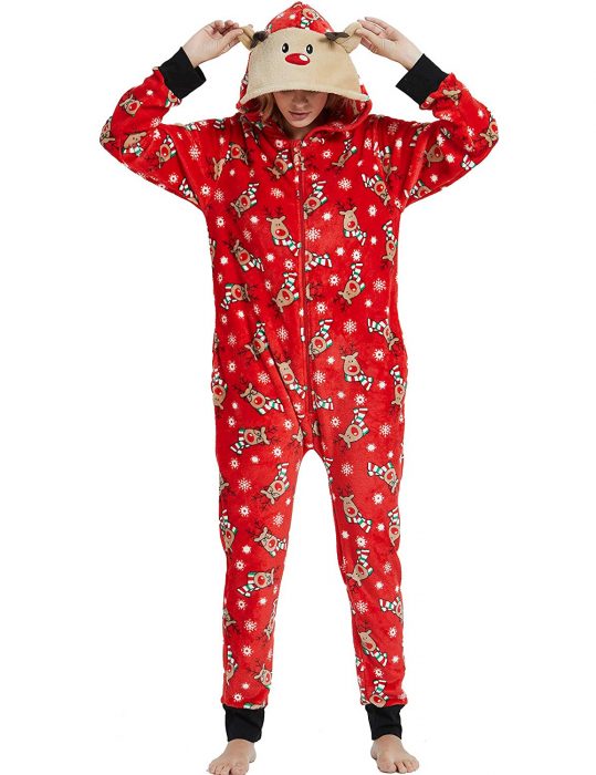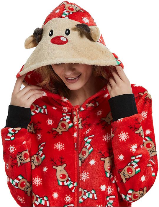 This endearing and lovable Johanne Home For Christmas Jumpsuit is produced courteously out of a premium superiority printed wool blended material which makes it more durable and comfortable enough. This nightwear consists of standard-length sleeves with rib knitted cuffs for a hassle-free experience on an unconditional basis. The professionally designed outwear has a zipper front closure allowing the wearer to zip up the front instantly. Without any doubt, the outfit is unimaginable outwear with an ear up animated hood made for the fashionistas.