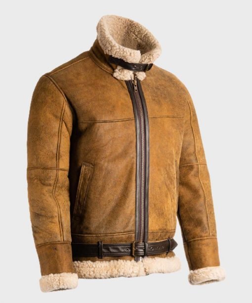 Men’s brown sheepskin B3 brown leather jacket fabricates with the most reliable and valuable smooth and long-lasting quality sheepskin leather. The craftsmanship of the B3 men’s sheepskin bomber jacket is unique. In addition, its inner lining is the finest quality satiny and silken shearling fur stitches inside the jacket. The sheepskin leather is known for its softness and velvety feel, and it offers the luxury of lightweight to carry easily. Moreover, you can wear the men’s sheepskin bomber jacket to any function and party and wear it for outgoings in cool seasons. It has branded YKK original zipper closure to quickly and smoothly open and close, and it has an adjustable waist belted closure too. Furthermore, men’s sheepskin aviator jacket has a shearling fur collar to gives you immense calm.