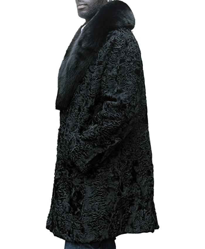Jeffery Persian Lamb Astrakhan Black Fox Fur Collar Coat