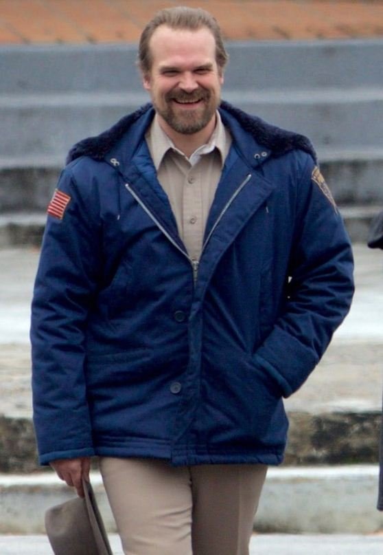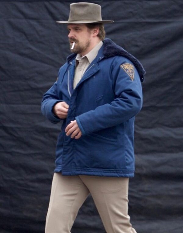 David Harbour TV Series Stranger Things Shearling Cotton Blue Jacket