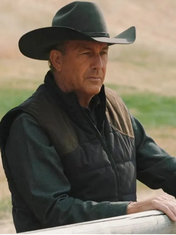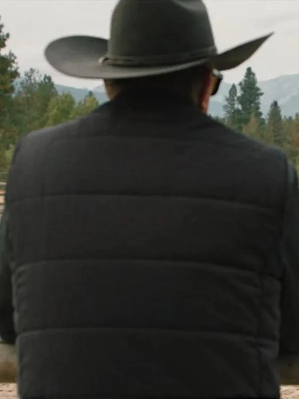 Kevin Costner Yellowstone Season 5 John Dutton Black Puffer Vest