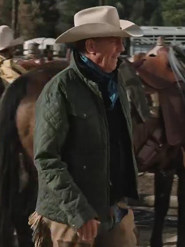 John Dutton Yellowstone Season 4 Kevin Costner Green Quilted Jacket