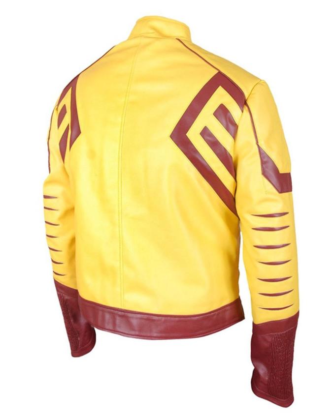 Wally West Kid Flash Logo Yellow Leather Jacket