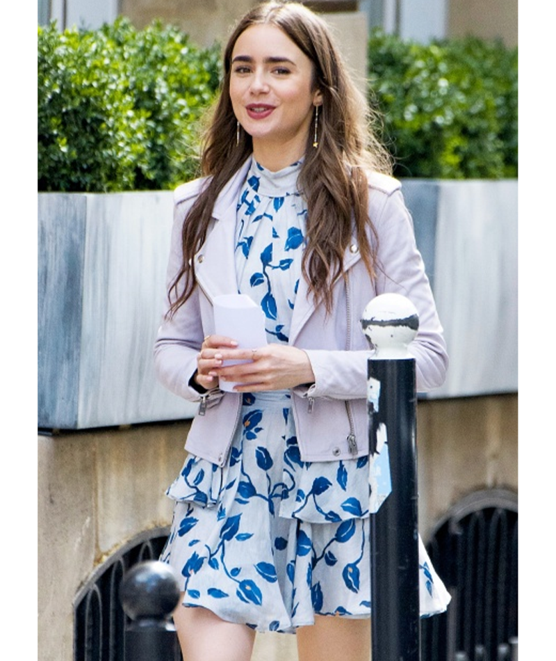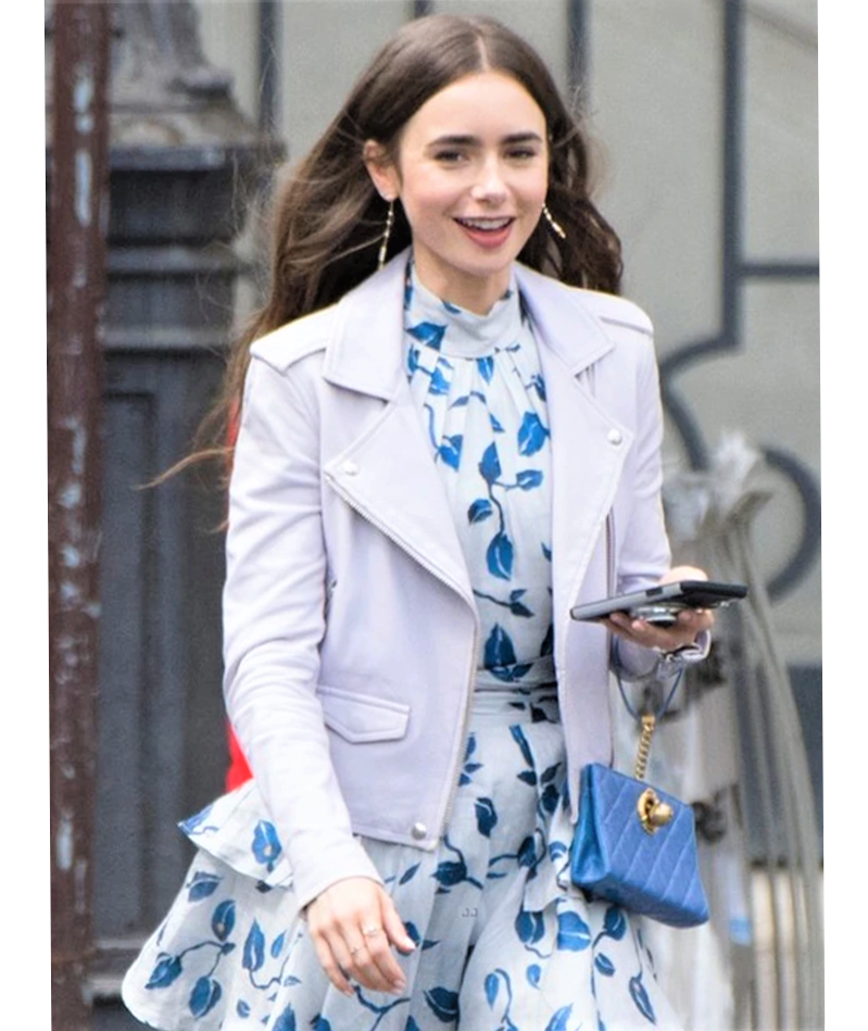 Lily Collins Emily in Paris White Leather Jacket