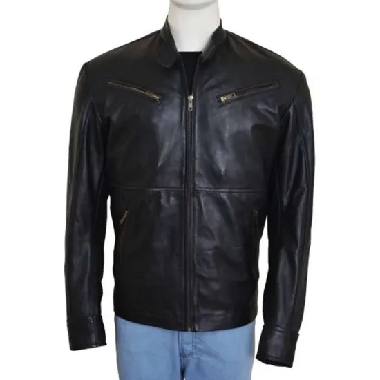 Baywatch Zac Efron Motorcycle Black Leather Jacket