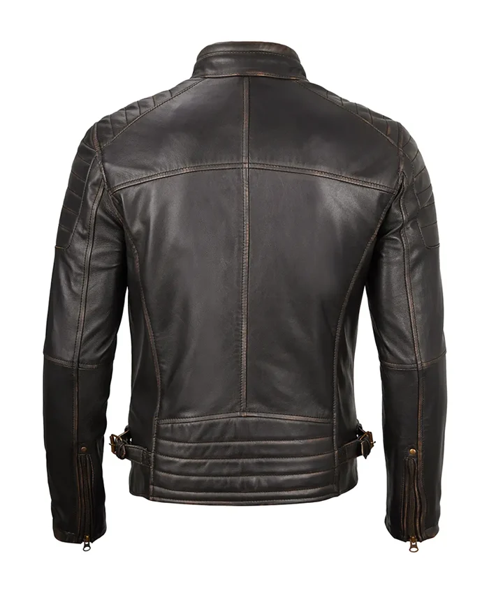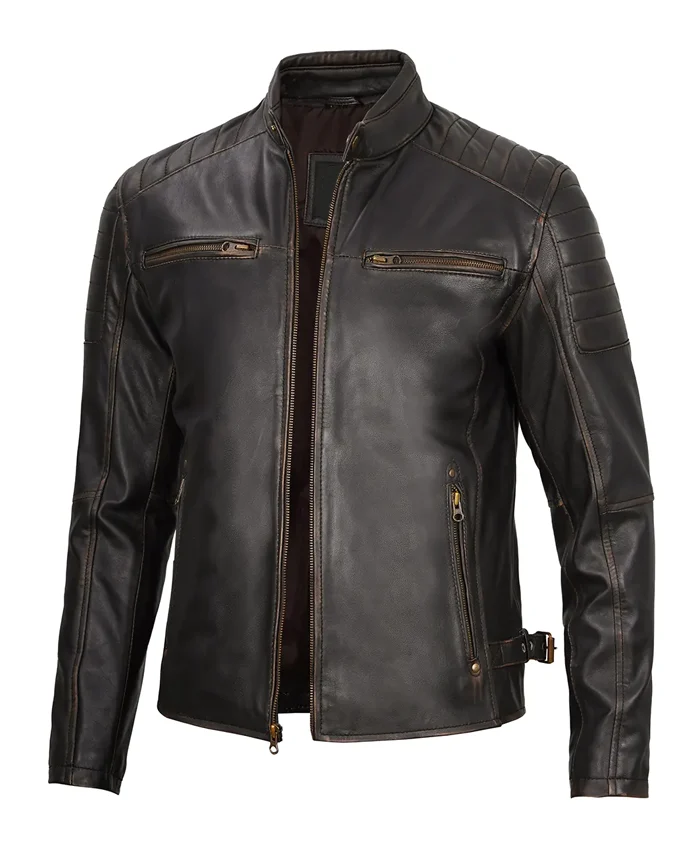 Cafe Racer Real Lambskin Leather Distressed Motorcycle Jacket
