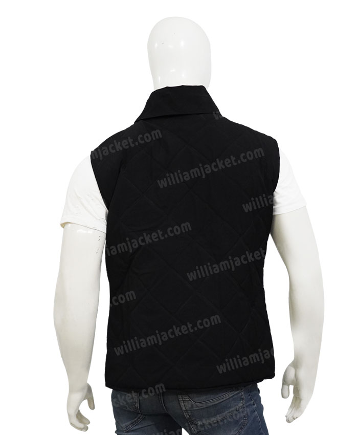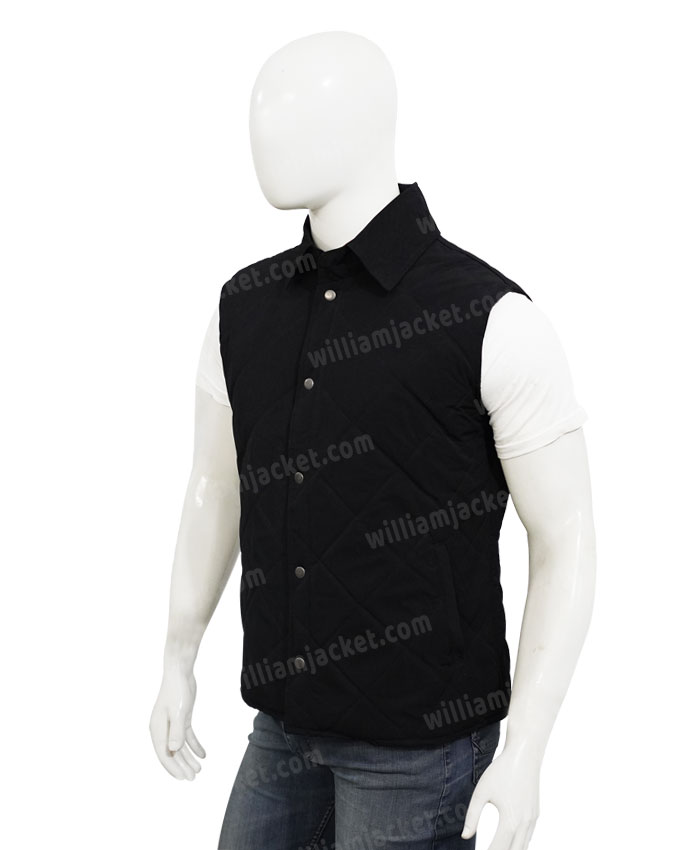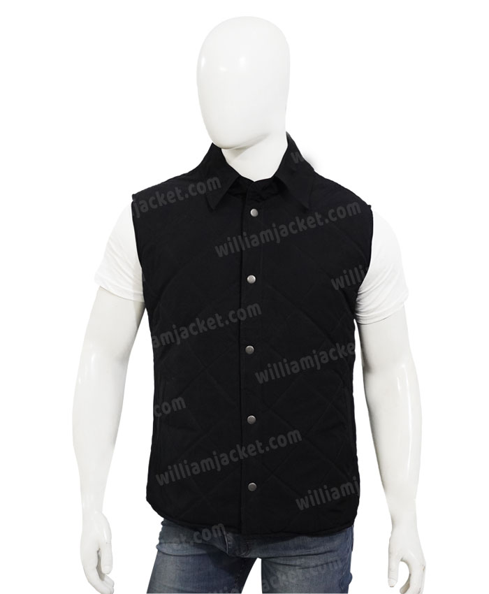 Kevin Costner Drama Series Yellowstone John Dutton Quilted Black Cotton Vest Jacket