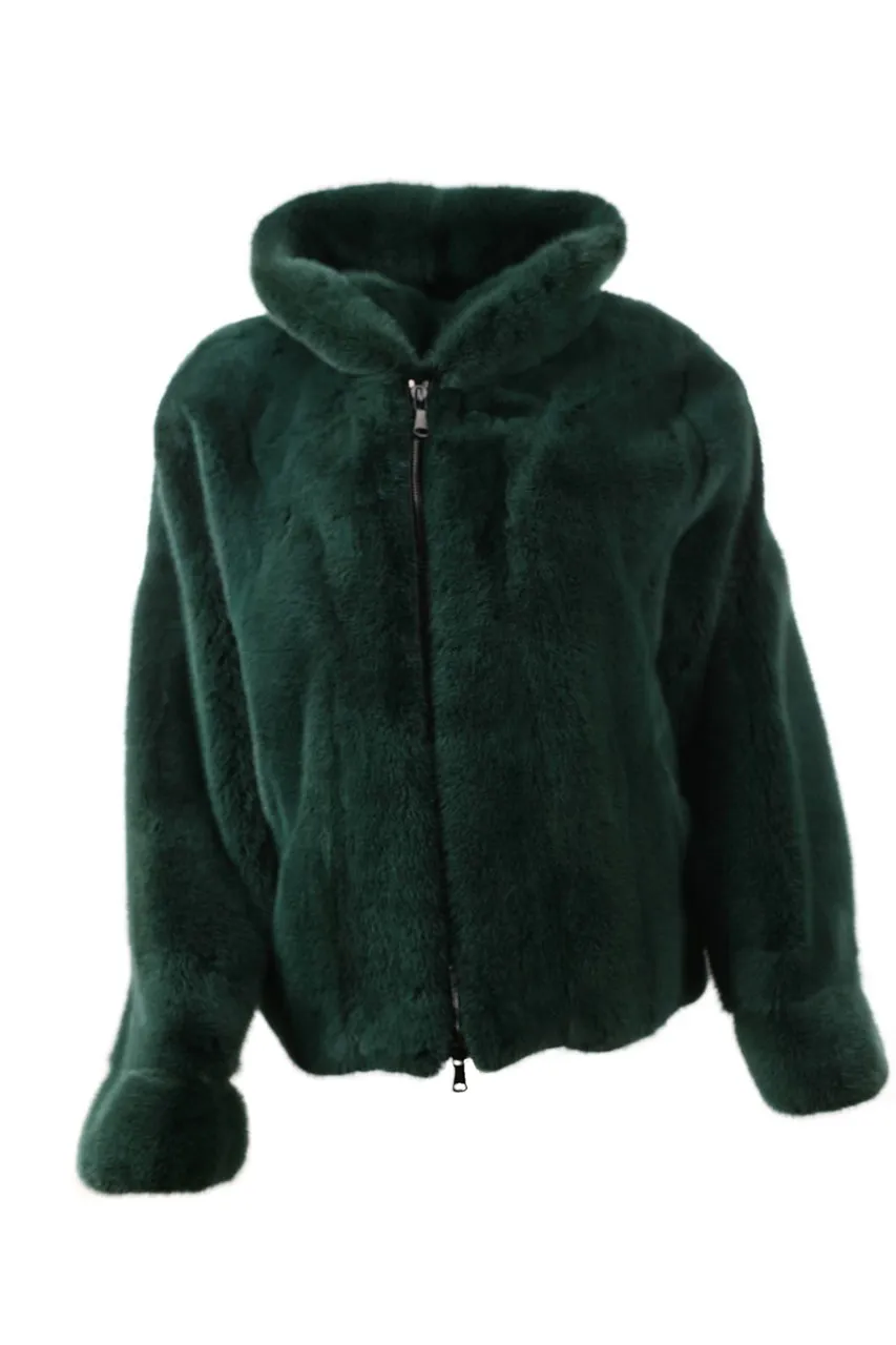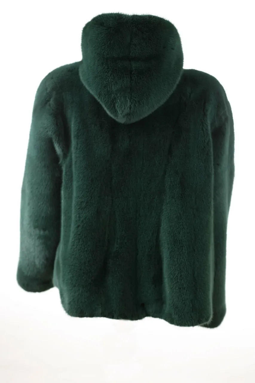 Mens All Green Mink Fur Bomber Jacket With Hood
