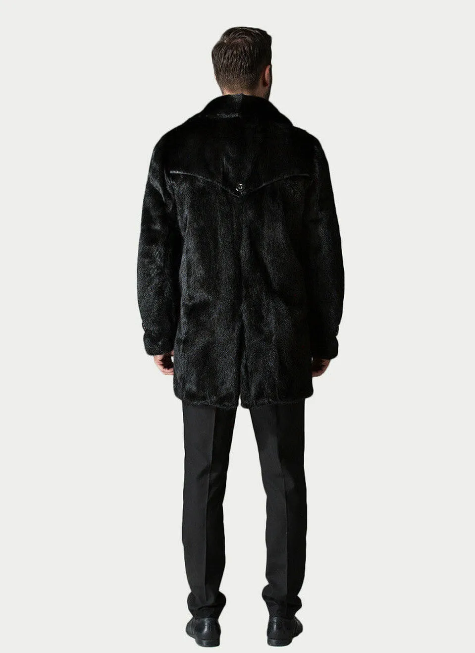 Mens Black Mid Length Mink Fur Soft and Warm Coat For Winter Season