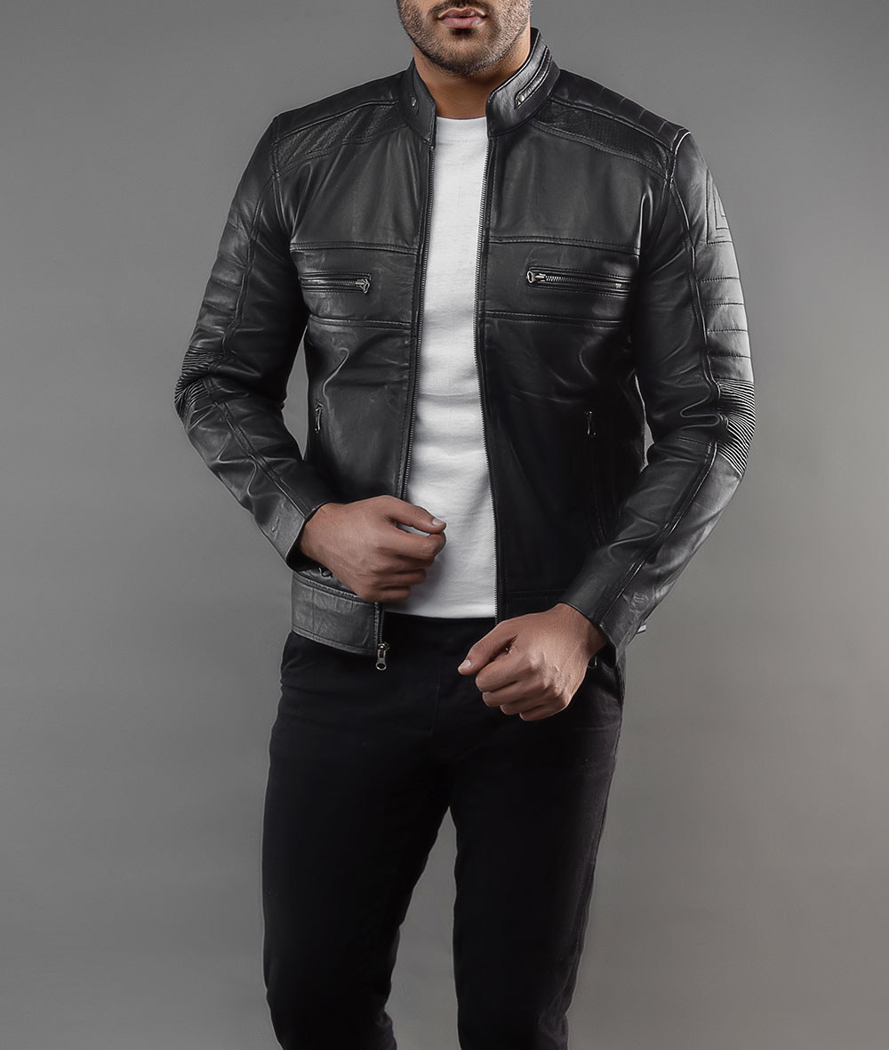 This Mens Cafe Racer Jacket is what you need to stay at the top of your game. Featuring high quality lambskin leather finishing that coordinates perfectly with front detailing such as four zipper pockets, two inside pockets, zip closure and upright collar. This Black Leather Biker Jacket for Men is perfect for your casual look.