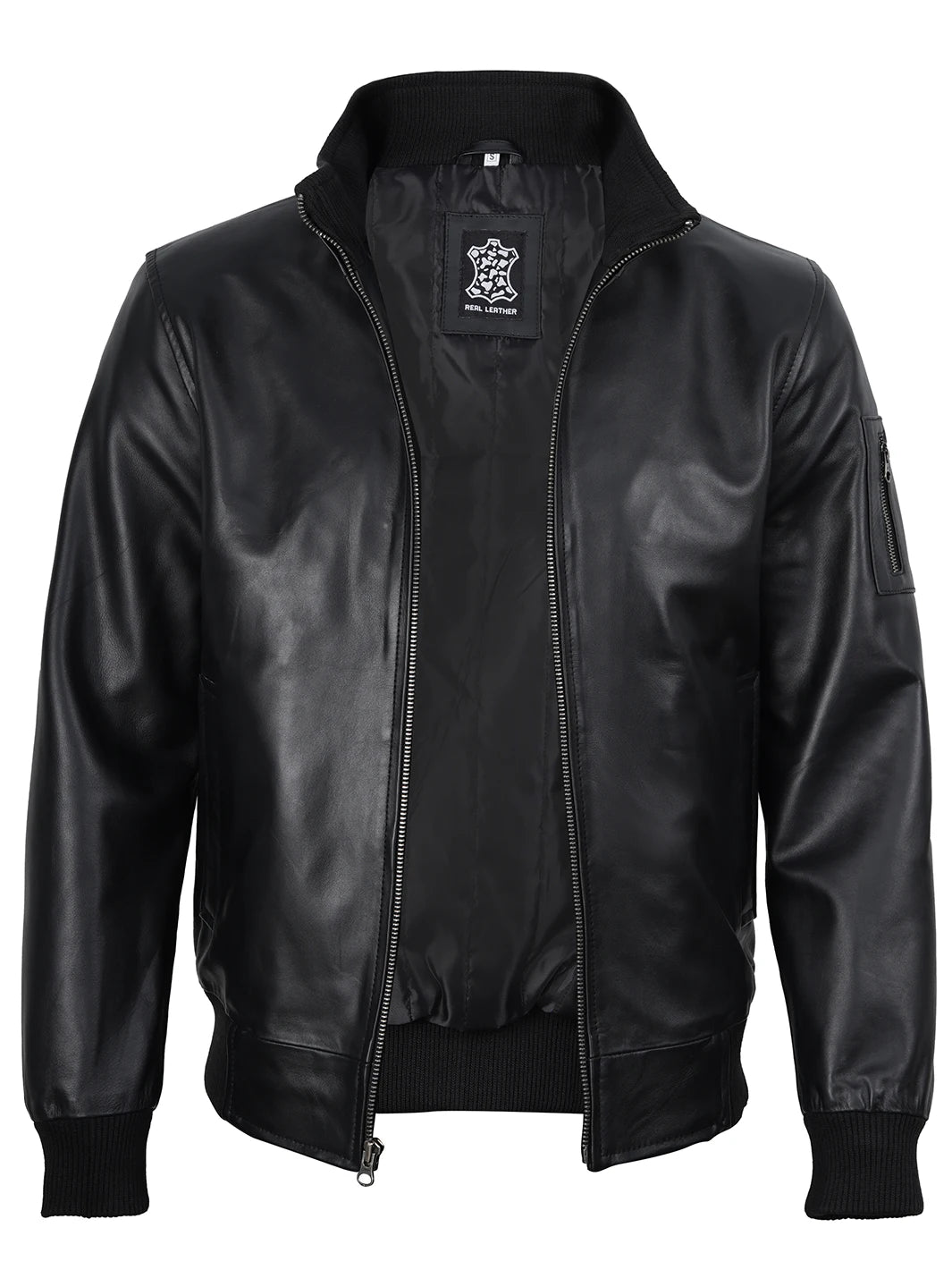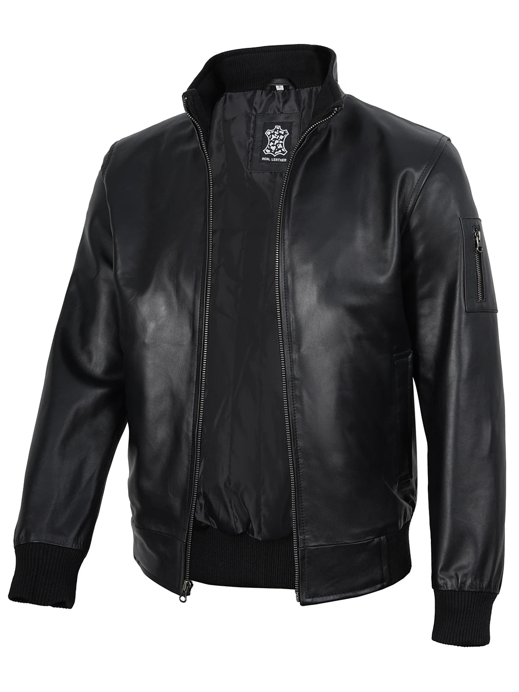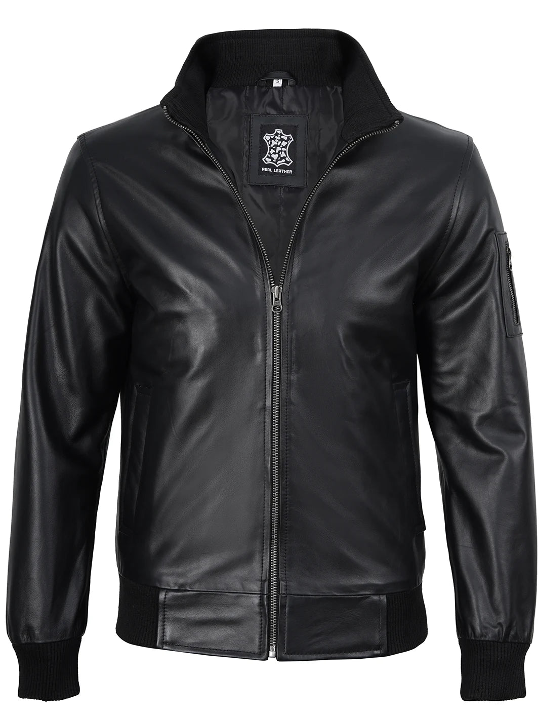 This black bomber leather jacket is a versatile staple that pairs effortlessly with any outfit. Made from 100% cowhide leather, it offers superior warmth and durability that lasts for years. Designed with a soft, breathable polyester lining for all-day comfort and ease of movement. It also includes two exterior and two interior pockets for convenient storage — making it perfect for everyday wear.