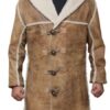 This distressed brown shearling coat is made of high quality suede lined with faux shearling on the collar that will keep you warm and comfortable. Firm stitched throughout, makes it strong and long lasting.