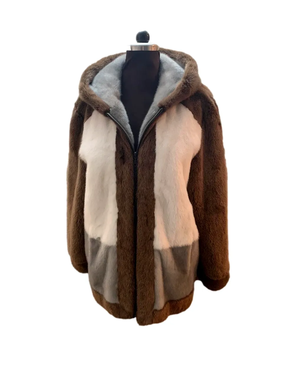 Mens Brown and Beige Colorblock Mink Fur Jacket