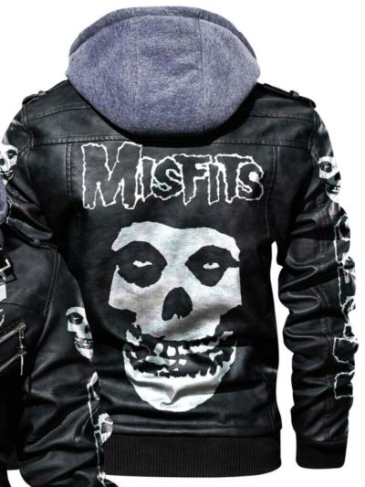 Men’s Skull Misfits Leather Jacket With Hood