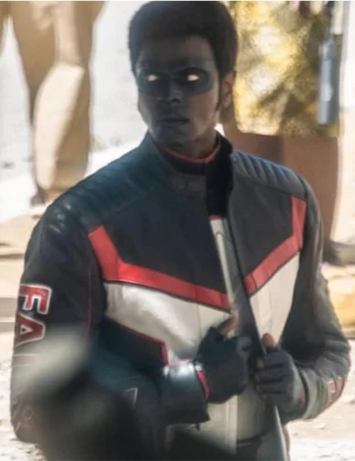 Buy Edi Gathegi Movie Superman 2025 Mister Terrific Black and White Leather Jacket