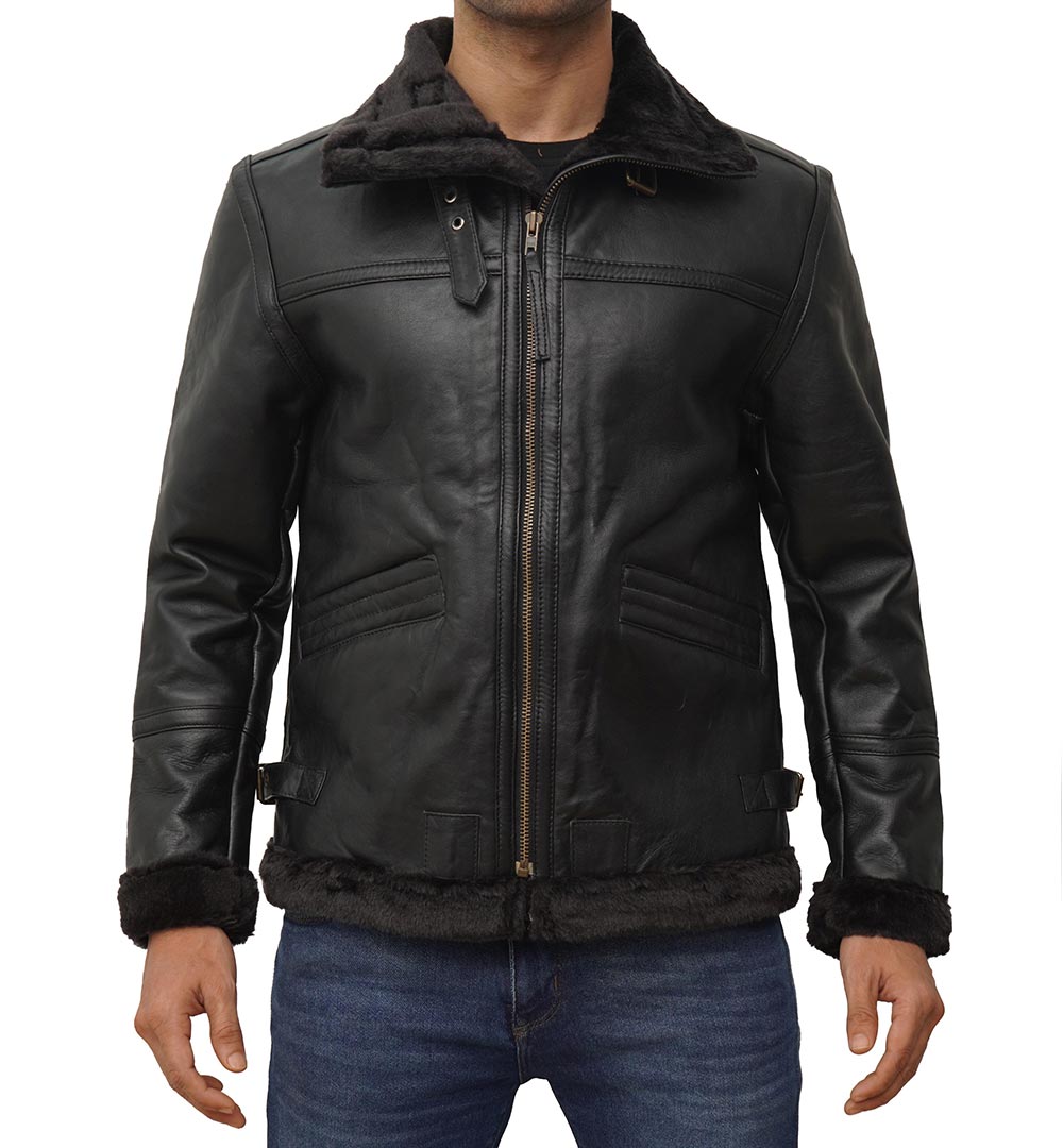 Our classic leather B3 bomber jacket mens is an urban streetwear staple and a must-have for your wardrobe. Clean and timeless, this cold weather outerwear offers timeless good looks and modern details such as a full zip closure, belted collar, shearling trims and deep outer pockets.