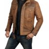 Moffit Light Brown Distressed Leather Motorcycle Jacket