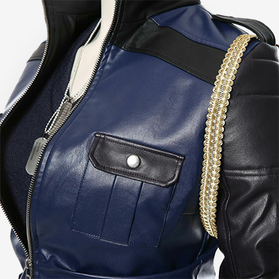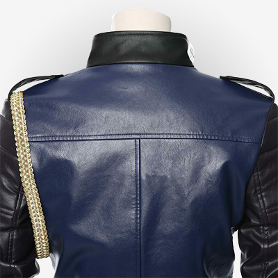 It comes with an erect collar, full-length sleeves, and rib-knitted cuffs. Multiple pockets are also available for your ease. The perfect blend of black and blue color gives a stunning look to this jacket. You can look stylish at the next Halloween party or on any other occasion you attend. Ladies get your hands on the perfect piece today!