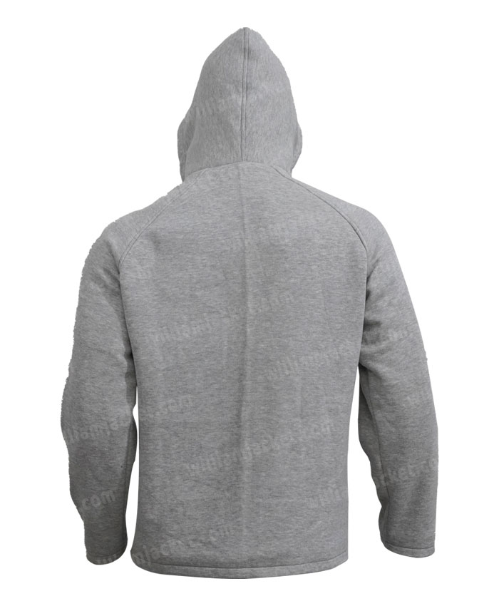 This jacket has constructed with fleece material. The Phil Dunster Track Hooded Jacket is excellent for comfort and a sleek appearance. The viscose lining has insulated to offer you a relaxing feeling. The hooded collar has designed to give you an extra layer of warmth. This grey hooded jacket is perfect for everyday wear.